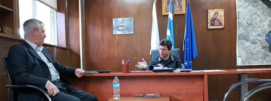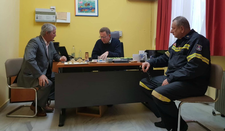 Συνοδευόμενος από συνεργάτες του, ο επικεφαλής της ΣΥΜΜΑΧΙΑΣ, συναντήθηκε με το νέο διοικητή της Υπηρεσίας, Πύραρχο Δημοσθένη Ραγκαβά και τους επιτελείς του (ανάμεσα στους οποίους βρισκόταν και ο υποψήφιος δημοτικός σύμβουλος της ΣΥΜΜΑΧΙΑΣ, Πυρονόμος Νίκος Ζουμπουρλής), με τη συζήτηση να περιστρέφεται γύρω από το μείζον ζήτημα της Πολιτικής Προστασίας στο Δήμο μας.